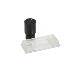 The Apex Scaler allows you to measure things with a microscope. To do this you will need an eyepiece with a scale in it which called a measuring eyepiece, and a slide with a microscopic ruler etched on it which is called a stage micrometer.